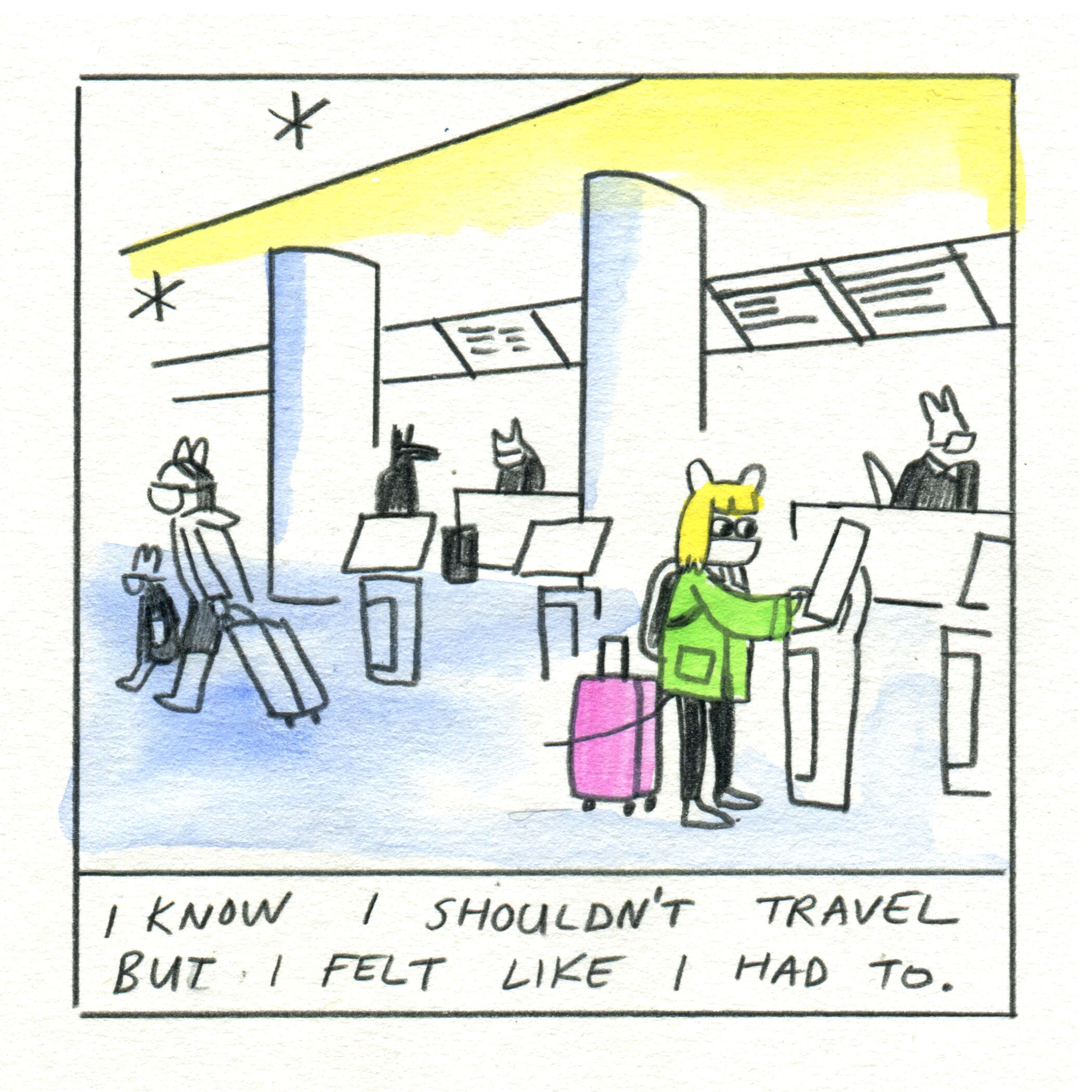 Diary comics drawn during a 3 month trip back to New York City during the first summer of the Covid-19 Pandemic.